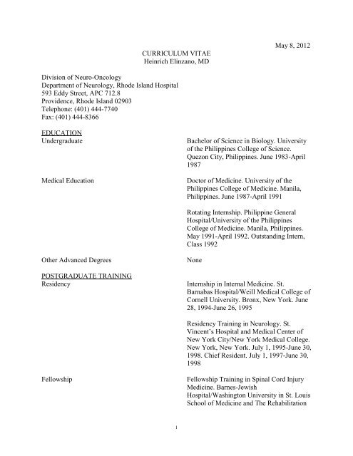 May 8 2012 Curriculum Vitae Heinrich Elinzano Md Division